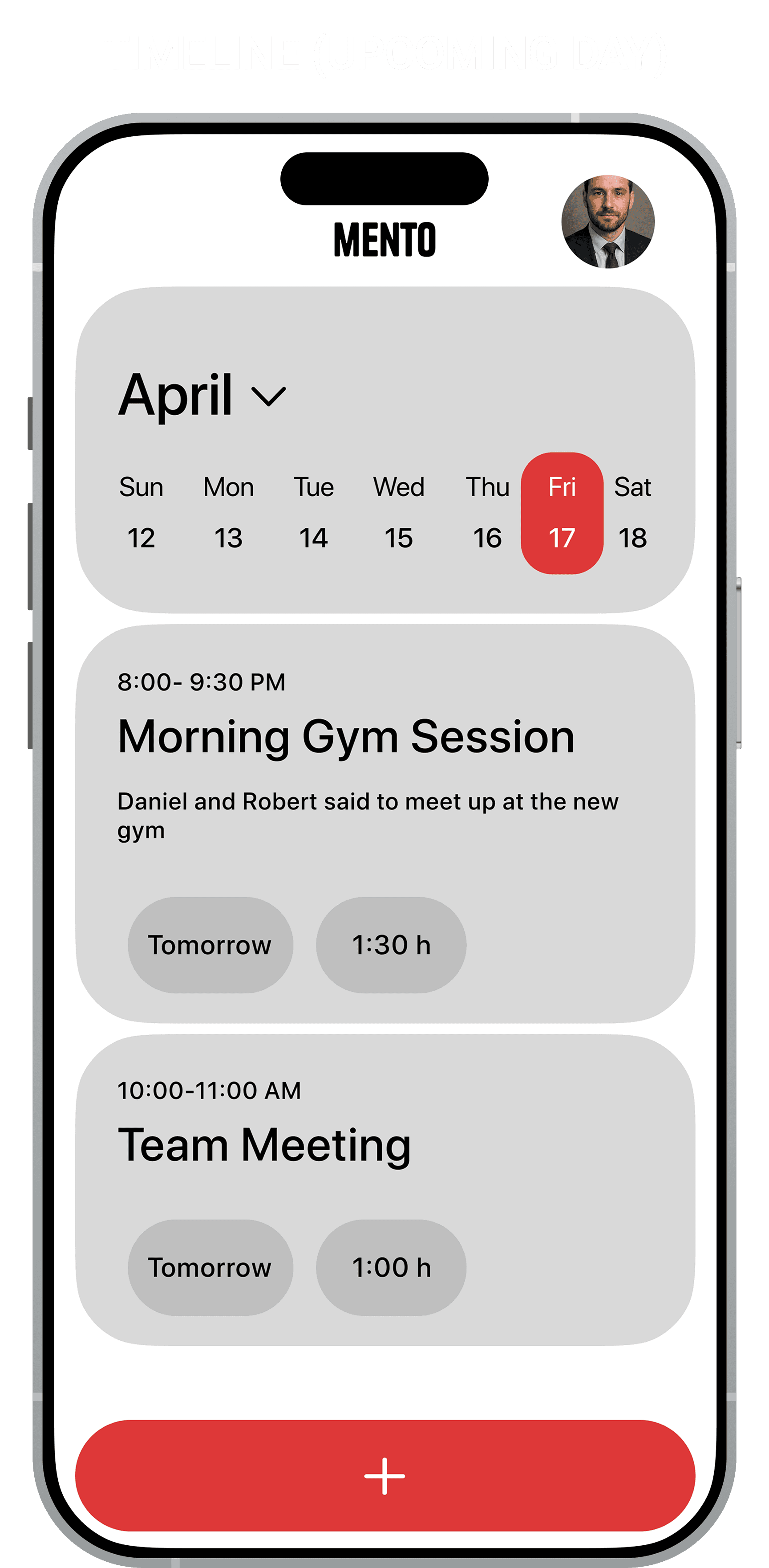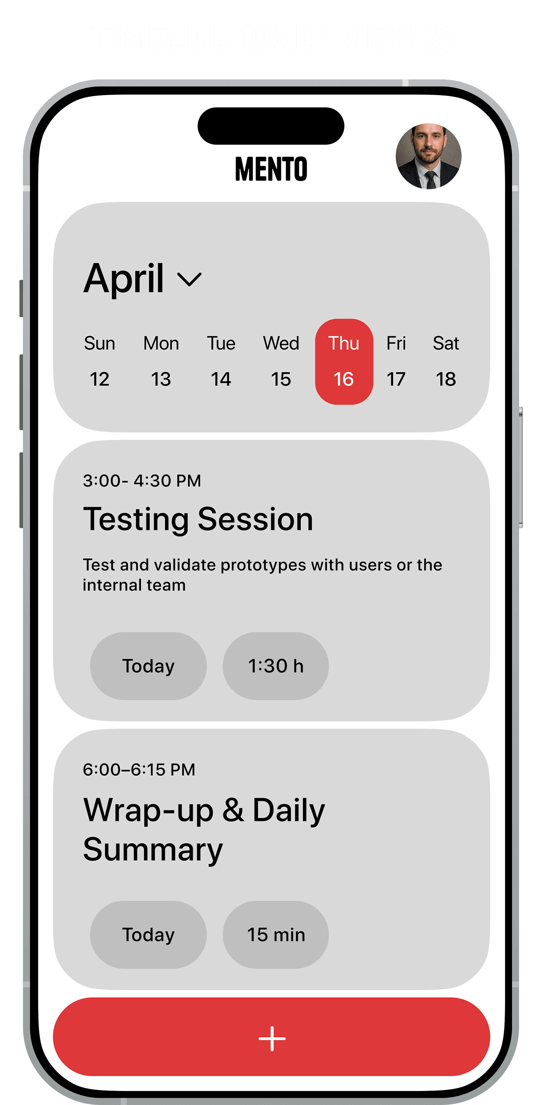 Functional Color Theory: The palette is strictly utilitarian. I used a Warm Grey (#E5E5E5) background to reduce eye strain compared to stark white. Red is reserved exclusively for the primary "Add" action and the "Current Date" indicator, creating a clear visual anchor that guides the eye instantly to the most critical interactive elements